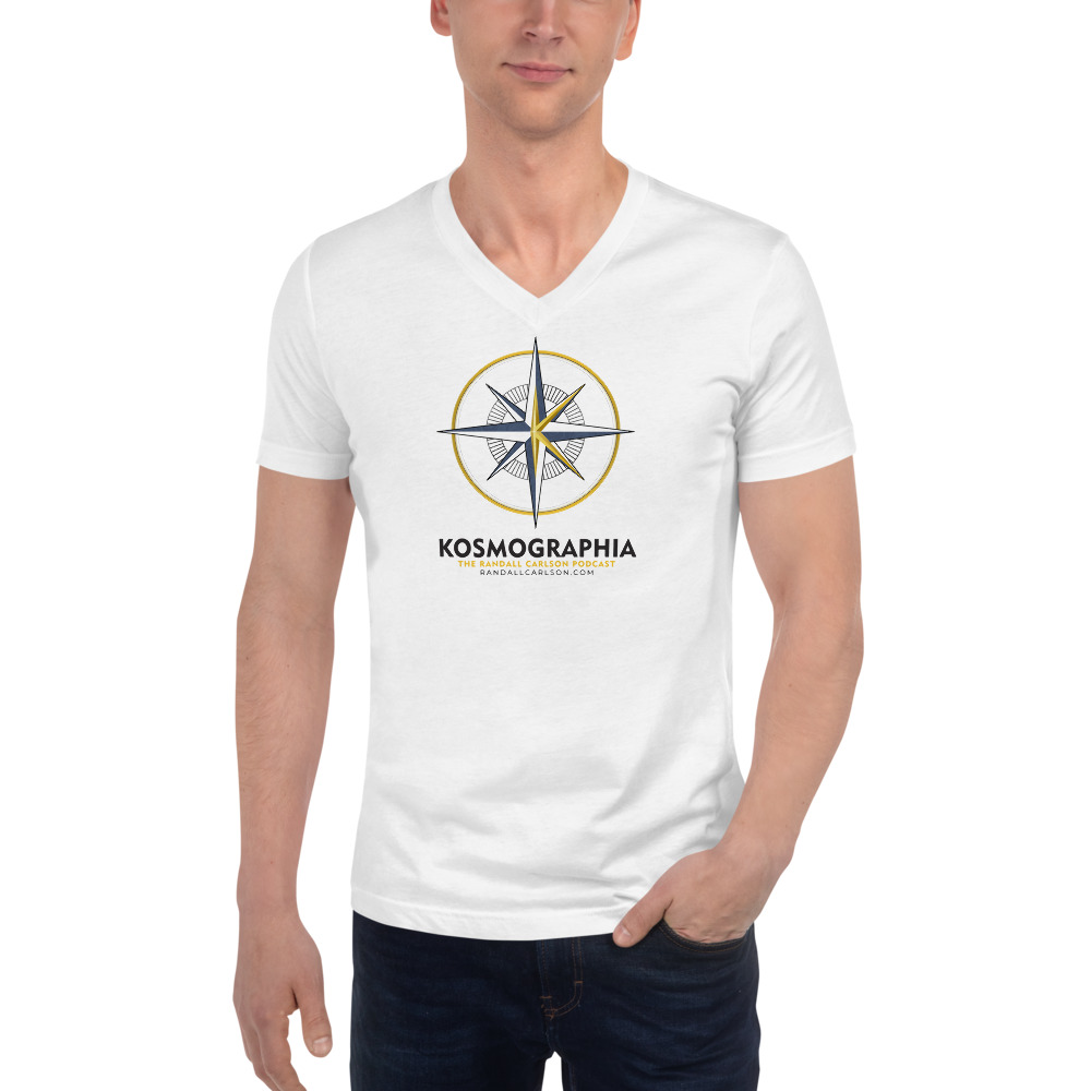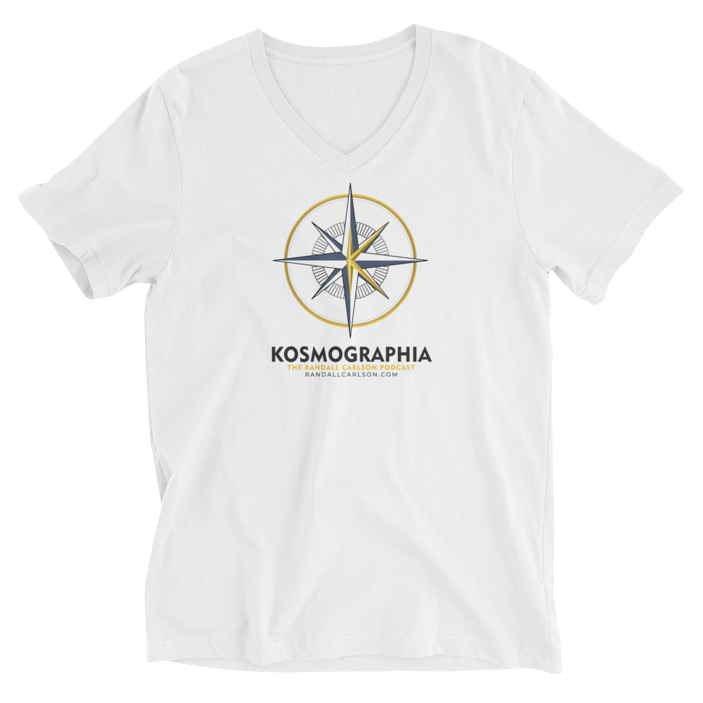Represent catastrophic Carlsonian cosmography in style with our classic Kosmographia Logo! Printed on a Bella + Canvas Unisex V-Neck Tee