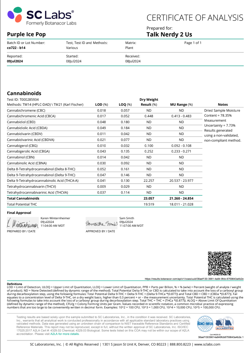 Certificates of Analysis / COAs